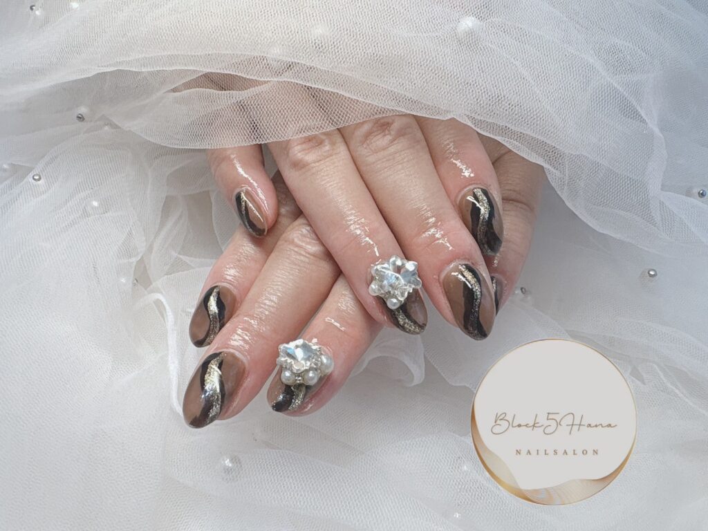 Nail No.3287【ビジュー×シンプルラインネイル】