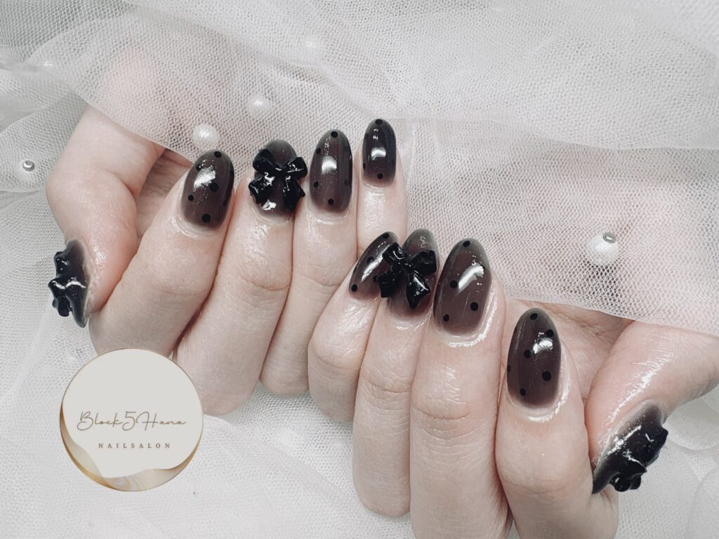 3. Nail No.3770【シアーブラックのリボンネイル】