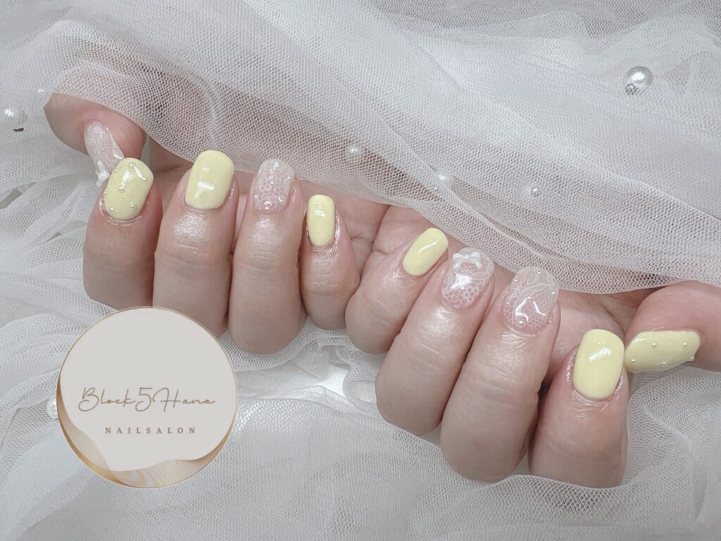 3. Nail No.3907【クリームイエローの春ネイル】